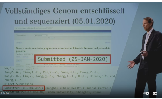 Am 05.01.2020 veröffentlichte das Shanghai Public Health Clinical Center: Vollständiges Genom des Coronavirus entschlüsselt und sequenziert. https://youtu.be/PA1jTZhyPcw?t=243