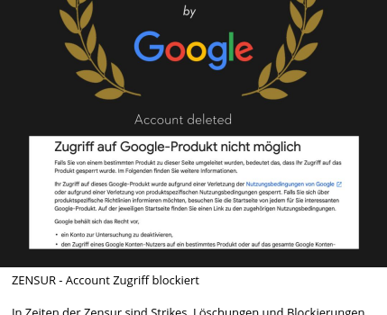 ZENSUR – Account Zugriff blockiert In Zeiten der Zensur sind Strikes, Löschungen und Blockierungen ein Indikator für gesellschaftliche Relevanz. Wir […]