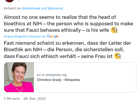 „Fast niemand scheint zu erkennen, dass der Leiter der Bioethik am NIH – die Person, die sicherstellen soll, dass Fauci […]