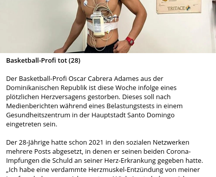 Der Basketball-Profi Oscar Cabrera Adames aus der Dominikanischen Republik ist diese Woche infolge eines plötzlichen Herzversagens gestorben. Dieses soll nach […]