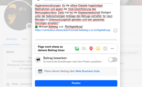 Facebook bewertet die folgende Information über die Ankündigung einer Großdemonstration am 03.08.2024 in Berlin als Spam und lehnt eine Veröffentlichung […]