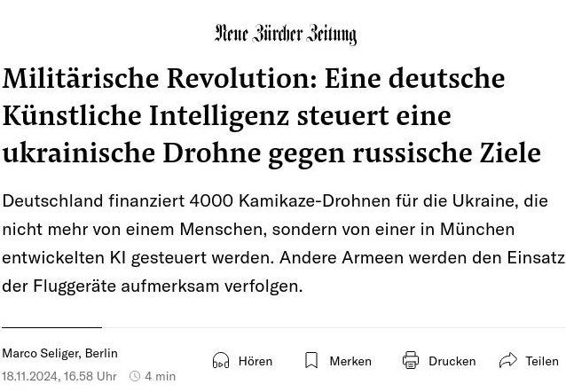 Die Ukraine wird mit deutscher Hilfe Kamikazedrohnen erhalten. Die Drohnen finden ihren Weg und ihr Ziel autonom. Die Bundesregierung hat heute bestätigt, dass sie 4.000 dieser bewaffneten Fluggeräte für die Ukraine finanziert.