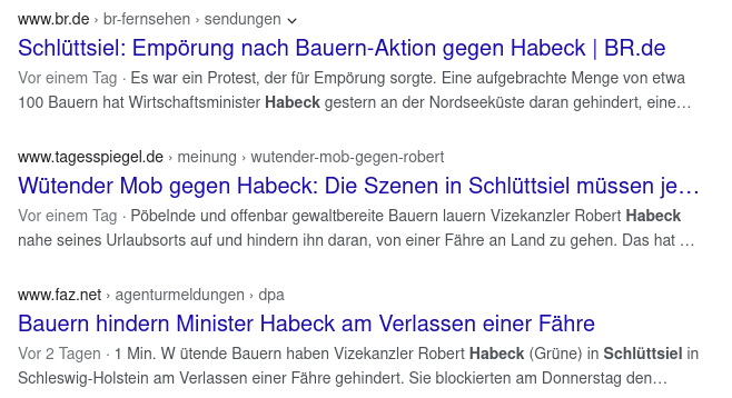 Das hinderte Politik und Medien aber nicht daran, den wütenden Landwirten einen organisierten Angriff auf den Minister zu unterstellen. Eine boshafte Zwischenüberschrift bei t-online lautet: „Protest von langer Hand geplant?“