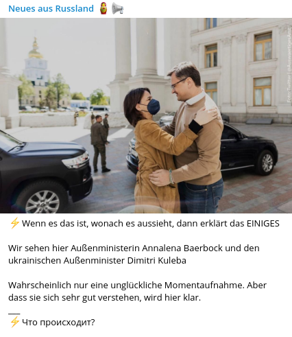 „Zum zweiten Mal seit Kriegsbeginn ist die deutsche Außenministerin in Kiew. Sie sichert dort weiteren Beistand zu. Das soll offenbar auch ein Zeichen gegen die Kriegsmüdigkeit hierzulande sein.“ (Spiegel)