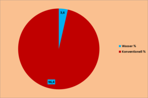 Unter Berücksichtigung der derzeit erkennbaren Hauptentwicklungsrichtungen der künftigen EE-Politik kann man begründete Mutmaßungen über die wahrscheinlichste künftige Aufteilung der Stromerzeugungsverfahren anstellen, siehe Bild 4. Da bisher erst knapp 26 % Gesamtanteil an der Erzeugung erreicht wurden und der Biomasseanteil von etwa 7 % vermutlich von der Politik früher oder später fallengelassen und durch Wind- und Sonnenkraft ersetzt wird dürfte, kann man sich leicht ausrechnen, welche gigantische Aufgabe noch vor uns liegen dürfte.