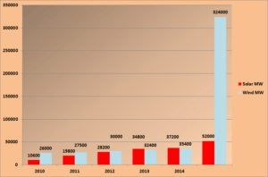 Abgesehen von den geradezu ungeheuerlichen Kosten kommt dazu noch der oben bereits angesprochene Kannibalismus-Aspekt, der sich mit dem weiteren Ausbau noch zu ungeahnten Dimensionen auswachsen wird. Um dies zu verdeutlichen, braucht man sich nur vor Augen zu führen, dass im Jahre 2014 die kombinierte Kapazität an Wind- und Solarkraftwerken bei ca. 73.000 MW lag. In der Spitze lieferten diese eine Leistung von zusammen 38.000 MW ins Netz. Da im Jahr 2050 eine Gesamtkapazität von rund 376.000 MW installiert sein dürfte, könnten diese zusammen in der Spitze 196.000 MW in ein Netz einspeisen, das je nach Lastsituation nur zwischen 40.000 und 90.000 MW aufnehmen kann. Die von den „erneuerbaren“ Kraftwerken angebotene und nicht verwertbare Mehrleistung läge somit zwischen 106.000 und 156.000 MW. In solchen Situationen dürfte die Konkurrenzsituation zwischen den beiden Hauptfraktionen der „erneuerbaren“ Stromerzeugungstechnologien richtig interessant werden. Werden erboste Windbarone mit schweren Ackergeräten über Solarplantagen herfallen? Oder werden Solarkönige die Sprengung von Windenergieanlagen in Erwägung ziehen? Oder wird es ein chaotisches „jeder gegen jeden“ geben? Es werden noch Wetten entgegengenommen….