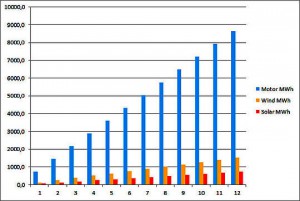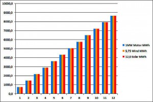 Anders ausgedrückt: Um ein Motorkraftwerk mit nominell 1 MW bei 98,5 % Auslastung zu ersetzen, muss man 5,75 MW Windleistung oder sogar 12 MW Solarleistung installieren – und deren Produktion bei „gutem“ Wetter auch irgendwohin schaffen, wo sie sinnvoll genutzt werden kann.