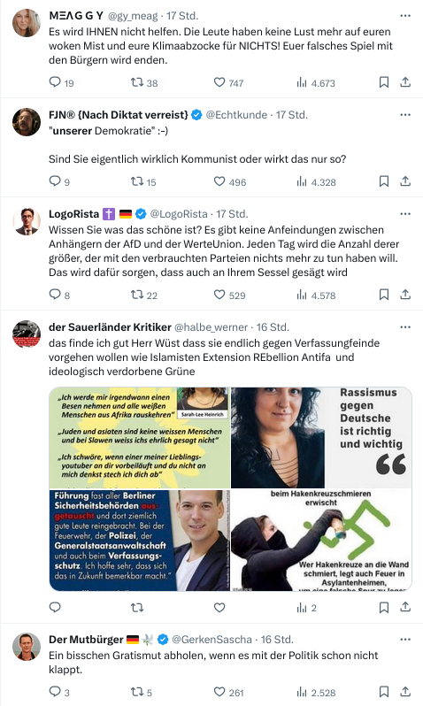 10 aufeinanderfolgende Kommentare zum Tweet von Hendrik Wuest