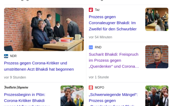 Der Mediziner und Autor Sucharit Bhakdi ist vom Vorwurf der Volksverhetzung freigesprochen worden. Das Amtsgericht im schleswig-holsteinischen Plön bewertete Reden des Angeklagten […]