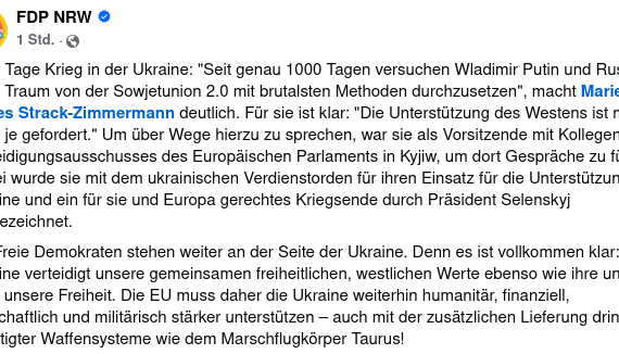 Die Berliner Zeitung meldet: „Trotz der Warnungen von Kremlchef Putin will Großbritannien Langstrecken-Raketensysteme an die Ukraine liefern.“ Sie sieht darin […]