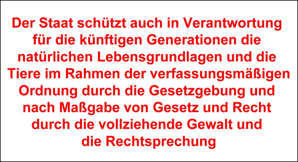 Bild 5. Der 1994 eingeführte und 2002 um den Tierschutz erweiterte Artikel 20a 7) des Grundgesetzes zum Schutz von Umwelt, Natur und Tieren